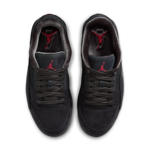 Cloaked in black, Off-Noir and Varsity Red, this debut edition gleans iconic Jumpman DNA with co-branding and distressed accents for a fashion-forward aesthetic. The tear-away portion on the back lets you choose which logo to display. The legacy continues ...